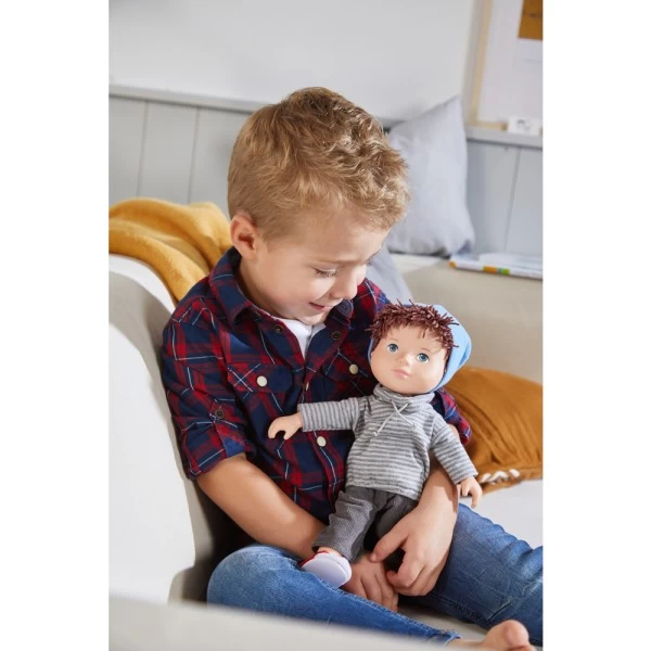 Einfach ein bisschen kuscheln oder tolle Rollenspiele inkl. An- und Ausziehen – die Haba Spielpuppe Matti ist ein toller kleiner Begleiter, der ordentlich Spaß in den Kinder-Alltag bringt. Der Körper ist weich und die Gliedmaßen bestehen aus Vinyl. Damit vereint der kleine Matti das beste aus der Welt der Kuschel- und Spielpuppen. Auch das sympathische Erscheinungsbild und sein netter Blick machen Matti zu einem Freund für den Dick und Dünn, den die Kids beim ersten Anblick lieben werden. • Haba Spielpuppe Matti