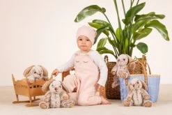 Der niedliche Stofftier Hase aus der Hermann Teddy Collection ist eine Schlenkerhase. Das heißt, das Arme und Beine beweglich angenäht sind und lustig hin- und herschlenkern, wenn das Plüschtier bewegt wird.