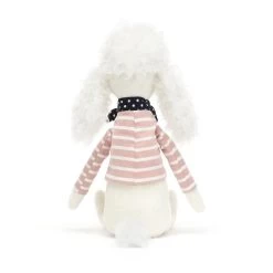 Beatnik Buddy Poodle von Jellycat hat einen witzigen Ringelpulli in rosa an und trägt ein Halstuch. Der weiße Pudel ist ein süßer Kuschelkumpel (ein Buddy eben…) mit langen dünnen Armen und Beinen zum Schlenkern.
