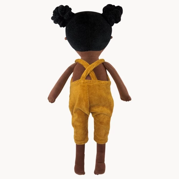 Taya von Little Ashé ist eine freundliche Stoffpuppe zum Knuddeln und Spielen. Du erhältst TAYA in einer senffarbenen Kord Latzhose mit Trägern. Sie hat einen kuscheligen Weichkörper. Die zwei Haarzöpfe sind aus weichem Samtjersey gefertigt.